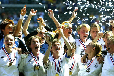 加時(shí)賽開始后,德國(guó)隊(duì)發(fā)起了一浪浪的攻勢(shì),加時(shí)賽上半段第7分鐘,德國(guó)隊(duì)獲得禁區(qū)外間接任意球的機(jī)會(huì),6號(hào)隊(duì)員將球傳給尼婭·金策爾,這名替補(bǔ)隊(duì)員在兩名瑞典后衛(wèi)的夾防下躍起頭球攻門,為德國(guó)隊(duì)打入一粒金球。憑借著這個(gè)入球,德國(guó)女足2比1擊敗瑞典隊(duì),第一次捧起了世界杯的冠軍獎(jiǎng)杯。