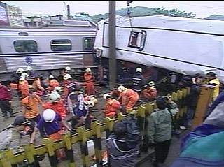 中新網(wǎng)10月14日電臺北縣鶯歌鎮(zhèn)今日上午7時38分傳出火車沖撞載游覽車的意外,游覽車上載了樹林育林高中的高中生,初步已知至少有20多人受到輕傷,已送往醫(yī)院救治,現(xiàn)場消防人員還在搶救。