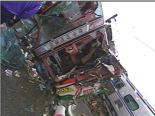 臺北縣消防隊指出,這起事故發(fā)生在早上7點(diǎn)38分,一列臺鐵火車在鶯歌鎮(zhèn)東鶯里中正路平交道沖撞游覽車,目前已知車上有許多小孩,多人受傷,但是傷亡數(shù)字還有待了解。除了鶯歌的消防單位之外,桃園地區(qū)的消防人員也已經(jīng)趕往現(xiàn)場支持搶救。事故發(fā)生原因,還有待了解。