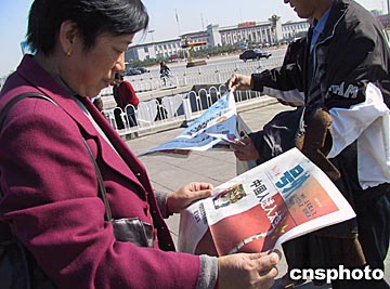 組圖:北京市民關(guān)注“神舟”五號(hào)成功發(fā)射