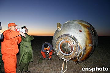 相關(guān)報(bào)道:多圖:“神舟”五號(hào)載人飛船成功著陸 (2003-10-16 14:10:48)