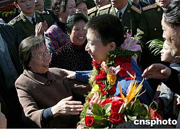 楊利偉凱旋 妻兒機(jī)場(chǎng)迎接