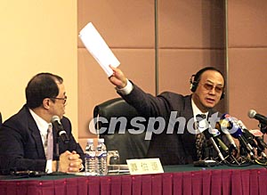 “內(nèi)地與澳門關于建立更緊密經(jīng)貿(mào)關系的安排”今天下午在澳門特區(qū)政府總部簽署。簽署儀式后,兩位簽署人安民和澳門經(jīng)濟財政司司長譚伯源在澳門世貿(mào)中心舉行新聞發(fā)布會,向媒體介紹有關情況。