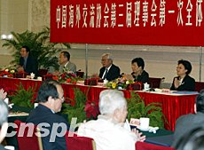 中國海外交流協(xié)會第三屆第一次全體理事會議二十一日在北京人民大會堂舉行,全國政協(xié)副主席羅豪才、中國海外交流協(xié)會常務副會長陳玉杰等出席會議。中新社記者:滿會喬