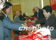 全國政協(xié)副主席羅豪才(右二)、中國海外交流協(xié)會常務副會長陳玉杰(右一)等為理事會領導成員、常務理事頒發(fā)聘書。中新社記者:滿會喬
