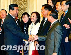中新社北京十月二十一日電(記者邢利宇)中共中央政治局常委、全國政協(xié)主席賈慶林今天在人民大會(huì)堂會(huì)見了臺(tái)灣工商建研會(huì)、女企業(yè)家協(xié)會(huì)、農(nóng)漁業(yè)協(xié)會(huì)大陸經(jīng)貿(mào)考察團(tuán)。