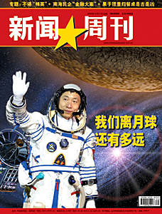 中新網(wǎng)10月22日電 楊利偉的一小步,是中國(guó)的一大步。這一步中國(guó)跨了很多年。“我們離月球還有多遠(yuǎn)?”這是下周出版的總第153期中國(guó)《新聞周刊》在封面提出的問(wèn)句。