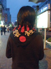 記者隨即裝作顧客挑選取起頭巾來。營業(yè)員告訴筆者,這種方巾是她們最近才進的貨,一條7元。在與店主的交談中,店主說,剛進入秋季的時候,這種方巾非常好賣,每天都可以賣出去十幾條,購買方巾也大多是年輕人,現(xiàn)在天冷了生意不是很好,不過每天還是有人購買。記者問道,那種白底紅太陽圖案的“方巾”有沒有?店主說,那種方巾賣得的最火了,早就賣光了。鄰近的一家店主也證實,一個月前這家的這種絲巾賣的特別火。