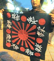 中新網(wǎng)10月23日電 據(jù)今日出版的《都市天地報》報道,本應(yīng)和“日本軍國主義”、“大東亞共榮圈”一起從中華大地上消失的代表侵略意義的“日本軍旗”,現(xiàn)在卻堂而皇之地出現(xiàn)在蘭州市的一些商鋪里,被當(dāng)做所謂“另類商品”出售。