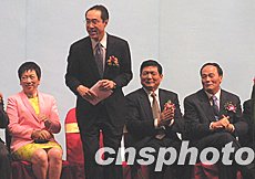 第七屆北京·香港經(jīng)濟(jì)合作研討洽談會(huì)二十三日在北京飯店舉行開(kāi)幕儀式,香港特別行政區(qū)政府財(cái)政司司長(zhǎng)唐英年(左二)致辭表示:北京與香港通過(guò)CEPA的合作將使雙方呈現(xiàn)“雙龍出海”之勢(shì)。中新社記者:廖文靜