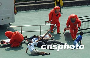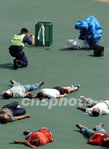 這次演習(xí)展示警隊及其它政府部門具備足夠處理恐怖事件能力。中新社記者:洪少葵