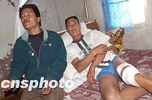 二十二日十一時左右,正在馬祖外公海捕漁的“閩連漁”2336號漁船遭遇馬祖海巡隊一艘海巡艇靠近查看。當(dāng)“閩連漁”2336號收完漁網(wǎng)返航時,馬祖海巡艇上連續(xù)向“閩連漁”2336號船左舷和左駕駛艙開了二十多槍,船員陳理寶、黃自團被子彈擊中左大腿。下午四時三十七分,“閩連漁”2336號返回連江,兩名受傷船員被送往丹陽醫(yī)院搶救。圖為船長劉錦濱(左)和受傷船員陳理寶講述當(dāng)時情形。作者:王浩東