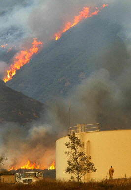 已經(jīng)被選下臺(tái)的加州州長戴維斯現(xiàn)在擔(dān)任滅火總指揮。他宣布加州處于緊急狀態(tài),并向布什總統(tǒng)求助。