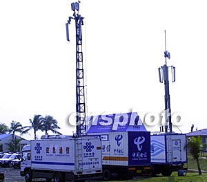 在博鰲亞洲論壇國際會(huì)議中心廣場,只見中國電信、中國移動(dòng)、中國聯(lián)通三大電信運(yùn)營商的保障車,齊齊停在停車場,旁邊設(shè)置了信號(hào)加強(qiáng)站,他們將確保論壇期間通訊二十四小時(shí)暢通。