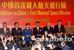 中新社香港十一月一日電(記者黃少華)今天上午九時(shí),在莊嚴(yán)的國(guó)歌聲中,在約四百名出席人士行注目禮的國(guó)旗和香港特區(qū)區(qū)旗交相輝映下,“中國(guó)首次載人航天飛行展”在香港科學(xué)館隆重開幕。香港市民亦開始了為期四天的與“神舟”飛船航天物品的親密接觸。