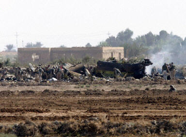 自齋月開始的一周內(nèi),伊拉克發(fā)生針對美軍的襲擊活動平均每天超過30次,美軍士兵死亡人數(shù)平均每天超過2人。而此前平均每天發(fā)生15至20次襲擊,每兩天陣亡一名美軍士兵。除巴格達外,巴格達以西60公里的費盧杰鎮(zhèn)是發(fā)生襲擊活動最頻繁的地點。費盧杰位于被稱為“遜尼派三角地帶”的區(qū)域內(nèi)。該區(qū)域位于巴格達、伊北方城市提克里特和西部城市拉馬迪之間,是伊拉克遜尼派穆斯林聚居的地區(qū)。伊拉克前總統(tǒng)薩達姆今年9月1日在卡塔爾半島電視臺播放的錄音講話中,稱費盧杰是伊拉克“抵抗運動的首都”。11月2日美軍運輸直升機被擊落的前幾天,就先后發(fā)生了費盧杰警察局遭汽車炸彈襲擊和費盧杰鎮(zhèn)政府辦公樓遭不明身份武裝人員襲擊等嚴重事件。11月1日這一天正值美國總統(tǒng)布什今年5月1日宣布伊拉克主要戰(zhàn)事結(jié)束的半周年。此前的數(shù)天內(nèi),巴格達一些公共場所出現(xiàn)了以伊拉克前總統(tǒng)薩達姆領(lǐng)導(dǎo)的“阿拉伯復(fù)興社會黨地區(qū)領(lǐng)導(dǎo)機構(gòu)”名義散發(fā)的傳單,宣布11月1日為“抵抗日”,并表示將在3天內(nèi)采取更多行動。這份傳單使巴格達幾乎陷入癱瘓狀態(tài)。駐伊美軍加強了戒備,如臨大敵。