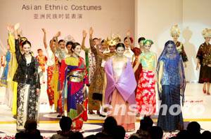 模特在博鰲亞洲論壇展示亞洲民族時(shí)裝。