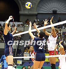 中國女子排球隊十一月三日下午在日本鹿兒島進行的世界杯賽事中,直落三局輕取剛剛露出“黑馬”之相的多米尼加隊。中國女排拿手的快攻戰(zhàn)術(shù)令對手防不勝防。中新社記者:王健