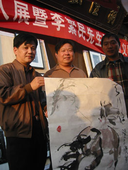 “太陽星城愛心之旅”的成員——著名畫家李繁民先生現(xiàn)場揮毫作畫,頃刻之間,一匹匹栩栩如生的駿馬就躍然紙上。在旁觀者中,有不少人是書畫愛好者,他們就著李老師的駿馬圖點(diǎn)評(píng),贊嘆聲不絕于耳。杭州的陳先生也是畫馬的愛好者,他說:“李老師的畫已經(jīng)跳出了傳統(tǒng)畫馬的局限,有自己的創(chuàng)新之處!