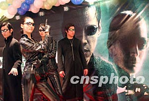 中新網(wǎng)11月6日電 據(jù)北京青年報(bào)報(bào)道,“萬事有始皆有終”,黑客迷們昨晚以狂歡和不舍的心情迎來了《黑客帝國(guó)3》的上映,雖然電影票的價(jià)錢是70元,且上映的時(shí)間是一個(gè)普通工作日的晚上10點(diǎn),天氣又很冷,但這些客觀條件只是更襯托出了《黑客帝國(guó)3》的火熱,昨晚在東方新天地影院,除了巨幅海報(bào)和電視屏幕上放映著影片的片花,除了現(xiàn)場(chǎng)有不少俊男靚女模仿片中主人公尼奧和崔妮蒂的樣子以一襲黑衣扮酷,來往穿梭于嘉賓與影迷中間,這部影片的上映并沒有超常規(guī)的布置,包括嚴(yán)密的防盜版舉措,但其所聚集的人氣卻是在今年上映的電影中所難以尋找的。