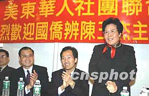 中國(guó)國(guó)務(wù)院僑務(wù)辦公室主任陳玉杰訪美行程中的第一場(chǎng)活動(dòng),就是來拜訪這家社團(tuán)。很多僑胞大清早趕一、兩個(gè)小時(shí)的路程,來和她見面。