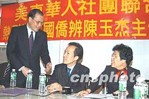 陪陳玉杰一同拜訪僑團(tuán)的,有中國(guó)駐紐約總領(lǐng)事劉碧偉。他笑著自問自答:“陳主任上任后第一次訪美,第一站就選紐約,為什么呀?因?yàn)槊罇|的僑社名氣大嘛!對(duì)于廣大僑胞來說,國(guó)僑辦就是‘娘家’!眱S胞中馬上傳來“對(duì)”、“沒錯(cuò)”的應(yīng)答聲。