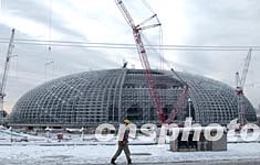 六日晚至七日晨,一場(chǎng)大雪突襲北京。正在建設(shè)的國(guó)家大劇院穹形屋頂鋼結(jié)構(gòu)骨架被大雪覆蓋,安裝焊接工作被迫暫停。中新社記者:張煒