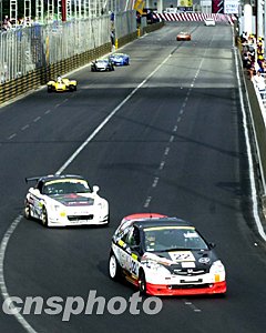第五十屆澳門格蘭披治老爺車大賽八日舉行新鴻基金融集團(tuán)香港汽車會路車錦標(biāo)賽排位賽,圖為比賽激烈進(jìn)行中。中新社記者:李剛