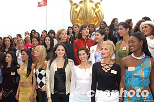 來(lái)自世界110個(gè)國(guó)家和地區(qū)的選美佳麗,十一月九日匯聚香港參加“第53屆世界小姐”選美大賽舉行的慈善活動(dòng),中國(guó)選手關(guān)琦(中)、中國(guó)香港特區(qū)選手楊洛婷(左)與參賽佳麗一起在金紫荊廣場(chǎng)拍照。中新社記者:錢興強(qiáng)