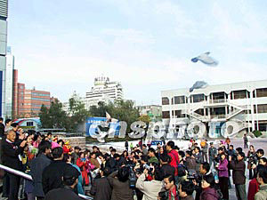 “神舟”五號飛船載人航天飛行取得圓滿成功,激起了中國廣大青少年兒童對航天科學的濃厚興趣。在活動現(xiàn)場,小朋友們對“神舟”五號載人飛船發(fā)射、運行、返回、著陸各個階段非常熟悉,他們爭先恐后地回答指導老師的提問,人人動手制作“降落傘”,驗證空氣阻力的原理和奧秘。