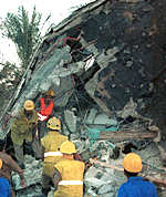 營救人員在進(jìn)行營救搜查
