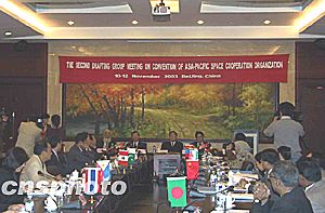 據(jù)悉,今年八月,亞太空間合作組織在泰國曼谷舉行章程起草組第一次會議,與會代表一致同意將亞太空間合作組織總部設(shè)在中國。十日舉行的第二次會議將結(jié)束亞太空間合作組織章程所有條款的討論,在獲得有關(guān)國家政府批準后,亞太空間合作組織即可正式成立。