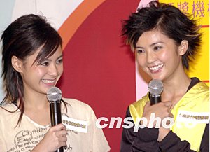人氣組合Twins兩位成員鐘欣桐(阿嬌)、蔡卓妍(阿Sa)11月12日在香港出席《2003四臺(tái)聯(lián)頒音樂大獎(jiǎng)》記者會(huì),兩人坦稱今年最希望獲得“四臺(tái)聯(lián)頒音樂大獎(jiǎng)---歌曲獎(jiǎng)”。中新社記者:鄧慶樂
