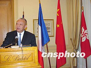香港特區(qū)行政長(zhǎng)官董建華十二日至十三日訪(fǎng)問(wèn)法國(guó)。在巴黎期間,他會(huì)晤了法國(guó)總統(tǒng)希拉克、法國(guó)財(cái)長(zhǎng)及法國(guó)工商界人士,董建華介紹了香港正在復(fù)蘇的經(jīng)濟(jì)形勢(shì)。法國(guó)各界對(duì)與香港開(kāi)展合作充滿(mǎn)興趣。董建華的法國(guó)之旅取得圓滿(mǎn)成功。圖為董建華于十三日上午在巴黎向新聞界介紹訪(fǎng)法成果。中新社記者:蔚中