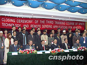 中國(guó)國(guó)家航天局局長(zhǎng)欒恩杰、聯(lián)合國(guó)外空司司長(zhǎng)卡馬休等官員出席本期培訓(xùn)班結(jié)業(yè)儀式,并為來(lái)華參加培訓(xùn)的二十九名學(xué)員頒發(fā)結(jié)業(yè)證書。據(jù)悉,這些學(xué)員主要為各國(guó)政府部門從事航天項(xiàng)目管理、遙感應(yīng)用方面的人員,中國(guó)國(guó)家航天局、亞太空間多邊合作秘書處、聯(lián)合國(guó)外空司、聯(lián)合國(guó)亞太經(jīng)社會(huì)還為部分發(fā)展中國(guó)家學(xué)員提供了資助。
