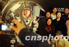 十一月十五日,夢系太空——人類航天事業(yè)歷程與成就展在北京中國科技館揭幕,來自北京華文學院的海外僑生們興致勃勃與心儀已久的太空英雄楊利偉合影留念。中新社記者:武仲林