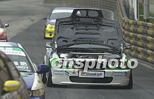 澳門第五十屆格蘭披治大賽車十六日進(jìn)行的比賽中,一輛賽車的引擎蓋突然掀開(kāi),該車手竟奇跡般的將賽車開(kāi)回發(fā)車點(diǎn)。中新社記者:李剛