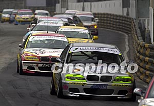 澳門第五十屆格蘭披治大賽車十六日進(jìn)行澳門博彩股份公司東望洋大賽,圖為比賽正在激烈進(jìn)行中。中新社記者:李剛