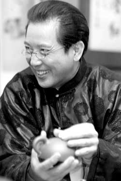 秦漢手中的壺光滑精巧,一眼就能看出是件極品。秦漢說:“能做出這樣的作品,除了要有精良的技藝之外,而且和人的氣質(zhì)、做人的修養(yǎng)有很大關(guān)系。這把壺手感細(xì)膩,曲線優(yōu)美,摸上去像是人體的肌膚。”秦漢介紹,因?yàn)槊堪褖囟挤浅U滟F,因此在拍戲過程中大家都小心翼翼,有時(shí)甚至端著壺的手都在不停地顫抖。