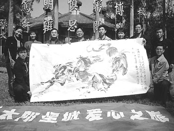 當(dāng)采訪團離去時,采訪團的畫家李繁民先生給他送了一幅駿馬圖,以示紀念。在這里,我們祝愿他能夠一生平安和幸福。