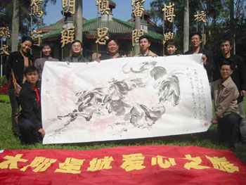 富明慧接受太陽星城愛心之旅贈(zèng)畫(華夏時(shí)報(bào)圖,太陽星城愛心之旅特派記者 大漠/攝)