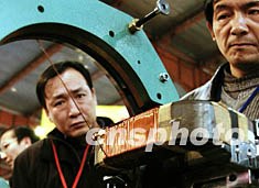 ,十一月十八日,“2003北京國際電力電工及電線電纜展覽會”暨“2003北京國際變壓器展覽會”在北京開幕。北京萬德特機電技術研究所研制的“通用型數(shù)控環(huán)形繞線機”展示變壓器產(chǎn)品快速纏繞技能,吸引了眾多國內(nèi)變壓器廠家的技術人員視線。中新社記者:鄒憲