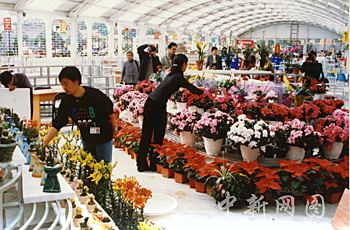 圖:花博園花卉交易紅火 花卉展廳一萬(wàn)平方米