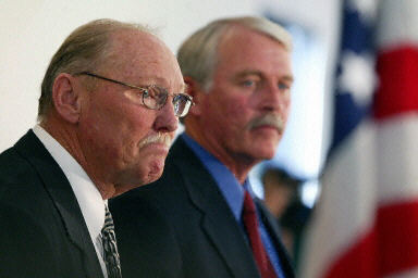 圣塔芭芭拉地區(qū)檢察官史奈登(圖左)及治安官安德森出席記者會