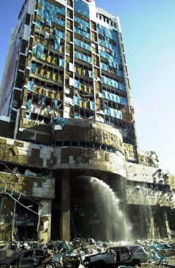 圖:伊斯坦布爾匯豐銀行總部建筑部分被炸毀