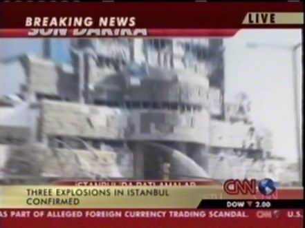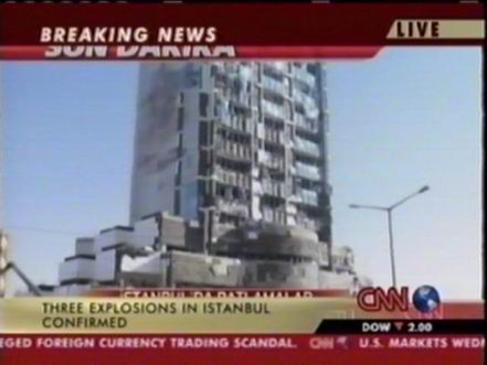 北京時(shí)間11月20日下午,位于土耳其伊斯坦布爾北部的土耳其匯豐銀行總部附近發(fā)生兩次爆炸,部分銀行建筑被摧毀。此后英國(guó)駐伊斯坦布爾領(lǐng)事館以及一個(gè)居民區(qū)和一座清真寺也遭到襲擊。圖為爆炸中被損毀的匯豐銀行。(春風(fēng))
