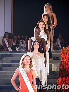 “你--好!海--口!你--好!海——南!你——好!中——國!”當(dāng)美女們用新學(xué)會(huì)的漢語向海島的人民問候時(shí),全場兩萬多觀眾高聲回應(yīng):“你好!世界小姐!”