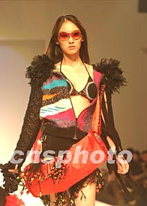 浙江工程學(xué)院國(guó)際時(shí)裝技術(shù)學(xué)院學(xué)生錢麗霞的作品《漣漪》二十三日在北京獲得第二屆中國(guó)針編織時(shí)裝設(shè)計(jì)大賽頭獎(jiǎng)。中新社記者:史利
