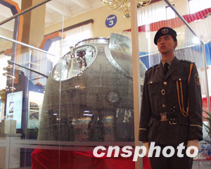 剛剛從香港、澳門、上海、重慶等地巡游返京的“神舟”五號載人飛船返回艙,以及航天員太空服、太空食品、降落傘等眾多中國載人航天技術(shù)產(chǎn)品,也在展覽會上一道與觀眾見面。