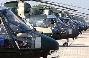上午十時(shí),駐港部隊(duì)航空兵團(tuán)一大隊(duì)六架海豚直升機(jī)飛抵石崗機(jī)場(chǎng),平穩(wěn)著陸后與即將離港的二大隊(duì)實(shí)現(xiàn)輪換。隨后六架同樣型號(hào)的直升機(jī)起飛,返回廣州基地。